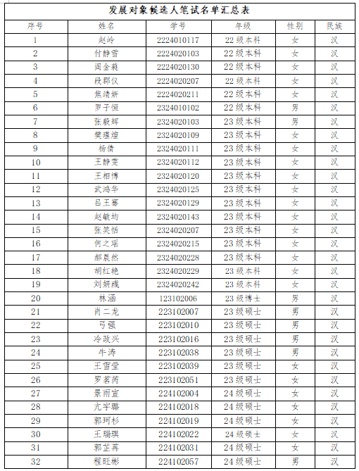 此次发展对象笔试的顺利举行,为我院发展党员的遴选工作提供了有力的参考依据,推动了我院党员发展工作科学、规范、高效、有序地进行。期望通过本次考试实现“以考促学”的目标,推动入党积极分子加强对党的理论的学习,弥补自身薄弱环节,强化思想信念建设,规范自身行为举止,通过考试,选拔出一批政治觉悟高、理论素养好的优秀学生,为学院党员队伍建设和高质量发展奠定坚实基础。