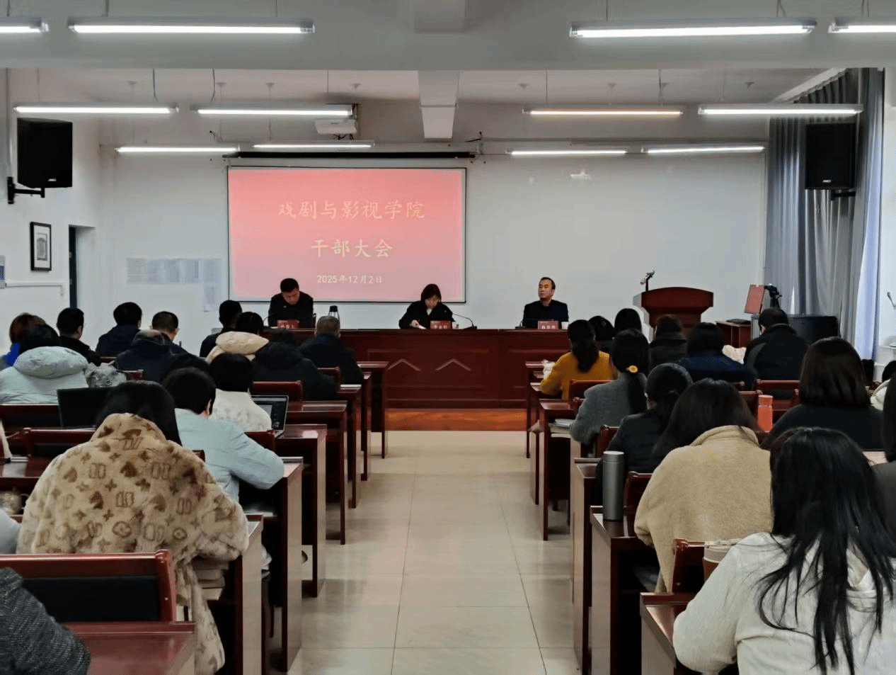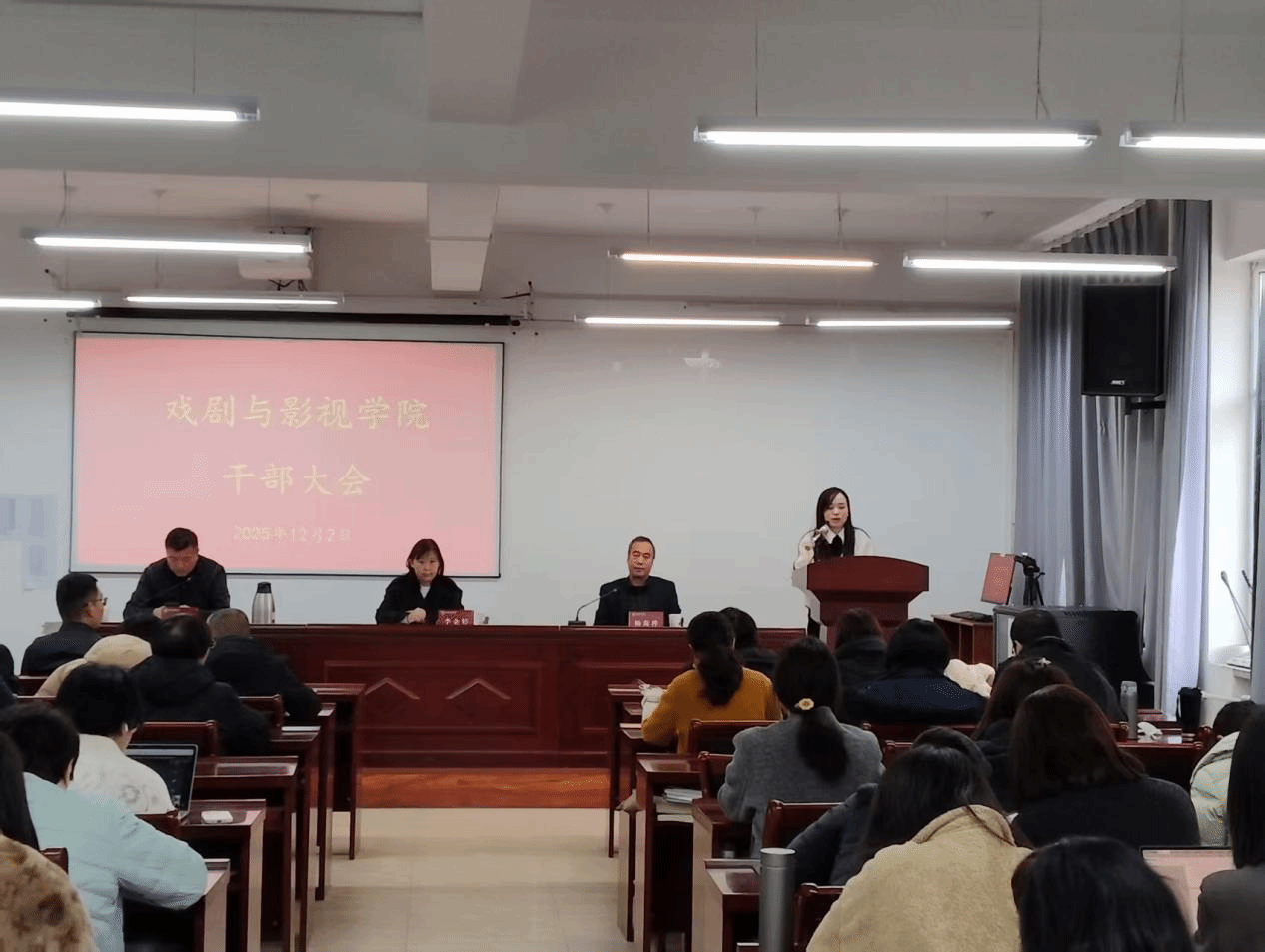为进一步优化学院领导班子结构,激发办学治院活力,推动戏剧与影视学院高质量发展,12月2日下午,我院在210会议室召开干部宣布大会。校党委组织部副部长李企婷出席会议,院领导班子成员及全体教职工参加会议,会议由院党委书记畅海桦主持。