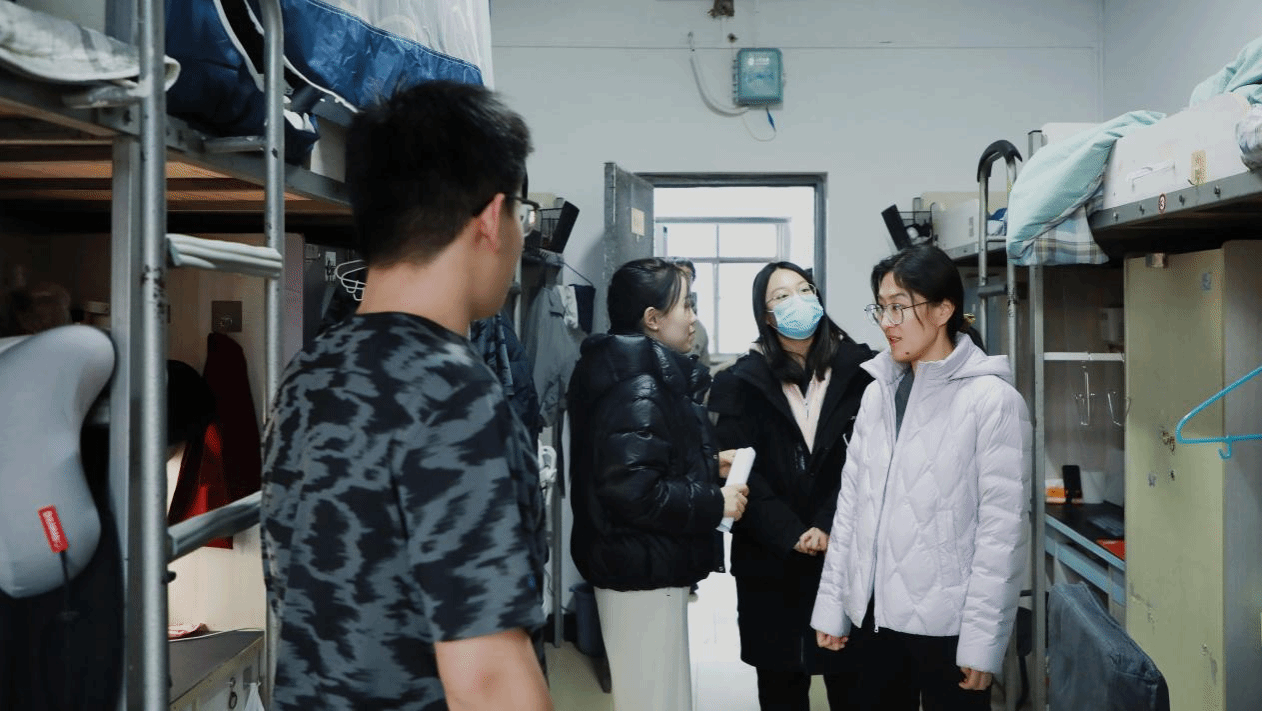 为进一步加强学生宿舍安全管理,营造整洁舒适、文明和谐的住宿环境,切实保障学生的身心健康与校园安全稳定,我院党委副书记刘平、团委负责老师李蓓蓓、辅导员潘雪儿带领团委学生会主要负责人,于2025年12月23日深入本科生、研究生宿舍,开展 “安全检查进宿舍,温情关怀暖人心”宿舍专项检查工作。