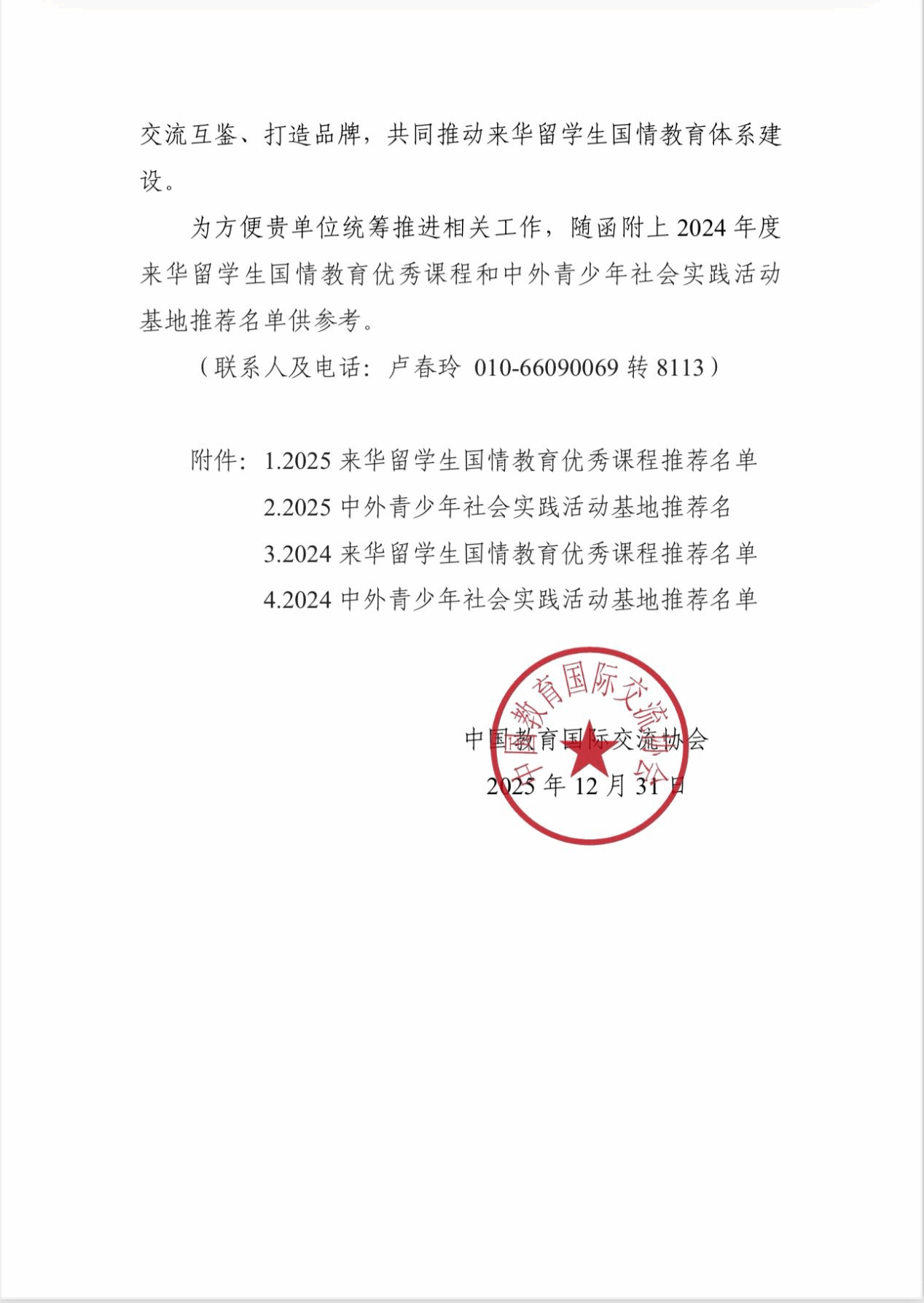 近日,中国教育国际交流协会公布2025年度中外青少年社会实践活动基地名单,由我校戏剧与影视学院牵头申报的“‘戏韵中国’中华戏曲文化会客厅”成功获批。这是学院深入推进中华优秀传统文化传承发展、拓展国际交流育人平台取得的重要成果,标志着学院在以戏曲文化为核心开展中外青少年社会实践与美育教育方面迈出坚实步伐。