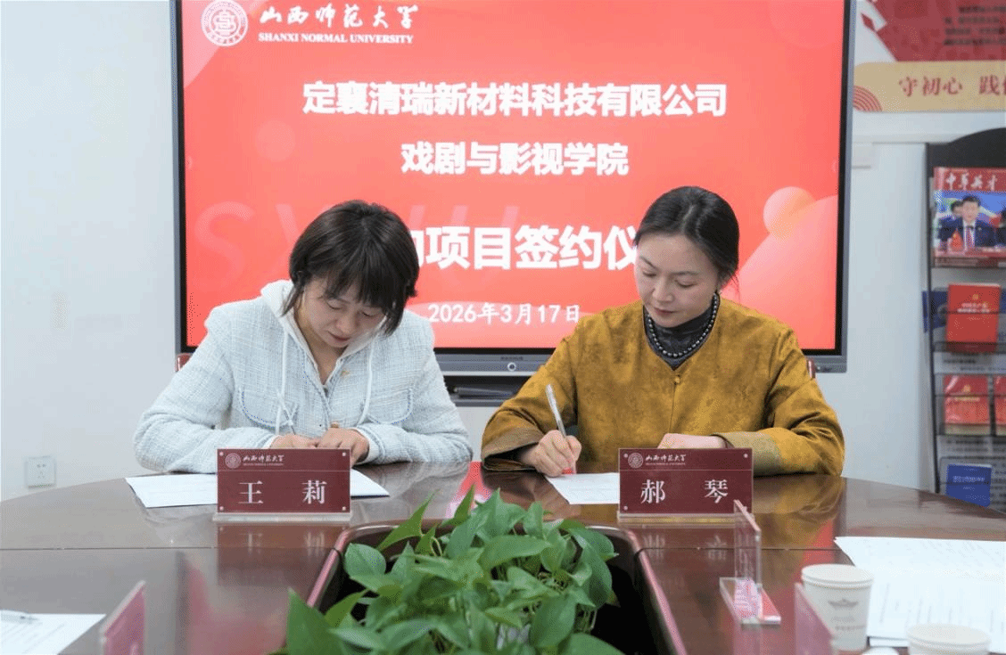 3月17日下午,我院与定襄清瑞新材料科技有限公司横向项目签约仪式在学院201会议室顺利举行。定襄清瑞新材料科技有限公司总裁王俊及财务、运营相关代表出席签约及座谈。我校副校长王小平,戏剧与影视学院党委书记畅海桦、院长王潞伟等出席本次签约仪式,签约仪式由我院党委书记畅海桦主持。