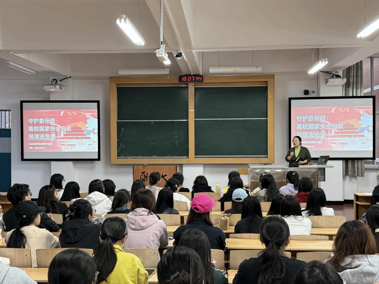 为增强新生国家安全意识,筑牢校园反间谍防线,9月18日,我院2025级研究生新生“高校国家安全与反间谍法制课”主题入学教育班会在3号教学楼成功举行。本次班会由研究生辅导员武晓旭老师主持,全体2025级研究生参加了此次班会。