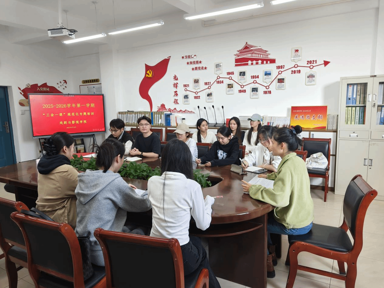 2025年9月19日下午,戏剧与影视学院在201会议室召开2025年第二次“‘三会一课’规范化”专项培训会议。本次会议由学院专职组织员张海霞主持,晋风、晋影、晋戏、晋韵、晋才、晋师六个党支部的负责人及支委会成员参加,本次会议旨在落实高校党建工作规范提升专项行动方案,持续深化“三会一课”制度规范化执行。